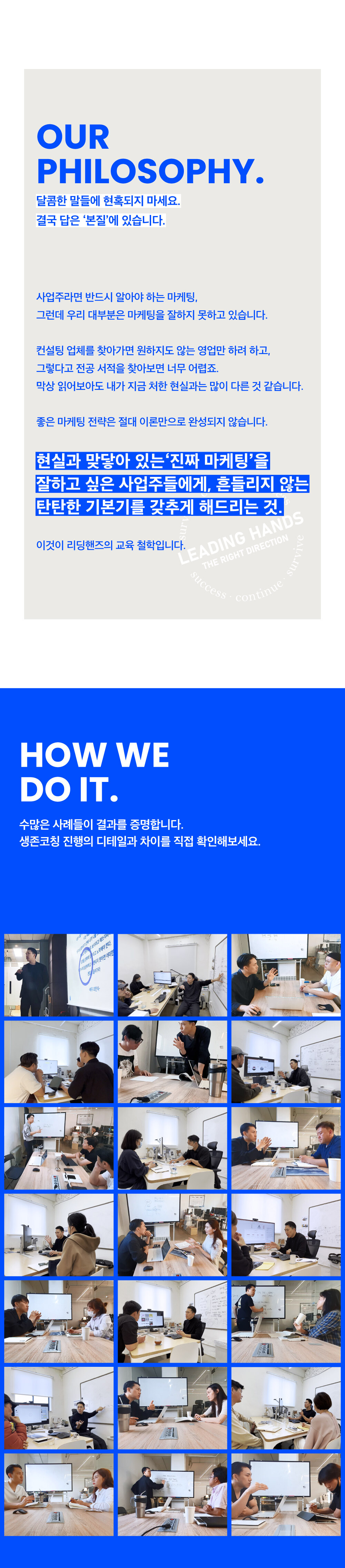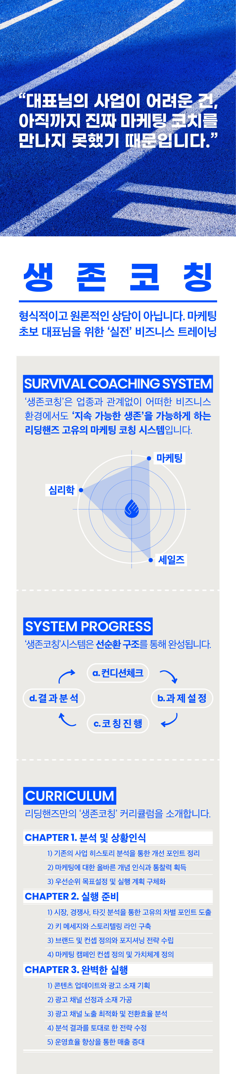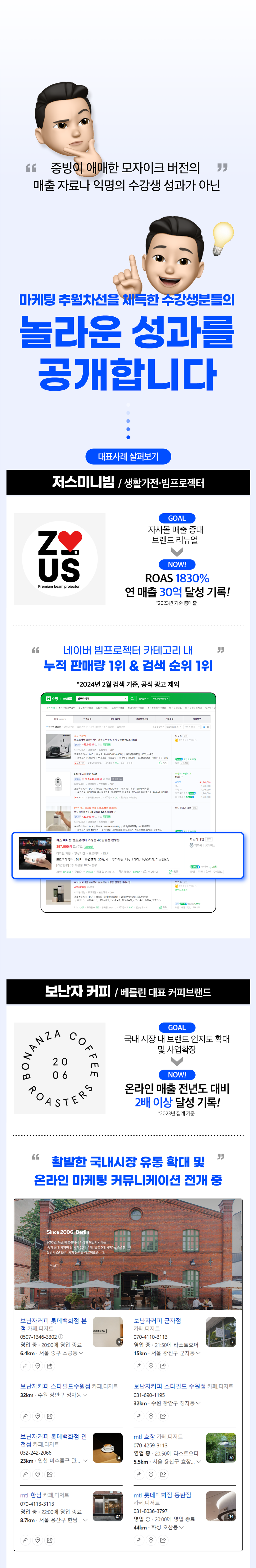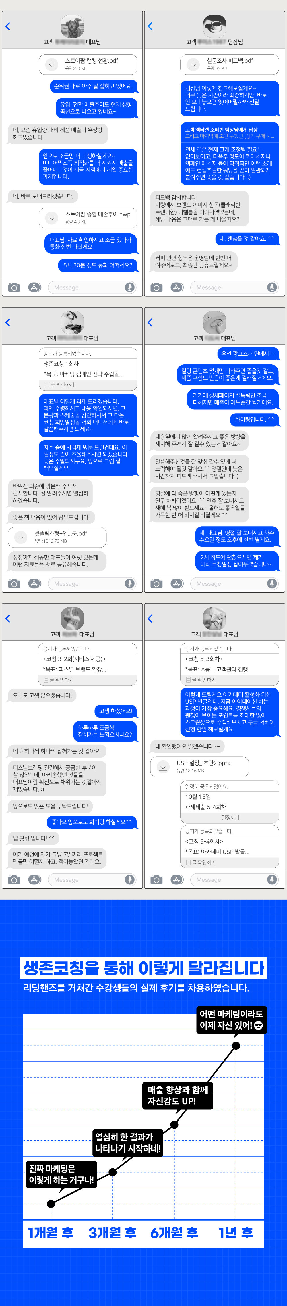 그리고, 지금도 크고 작은 사업체의 대표님과 마케팅 실무자 분들을 코칭하고 있죠
