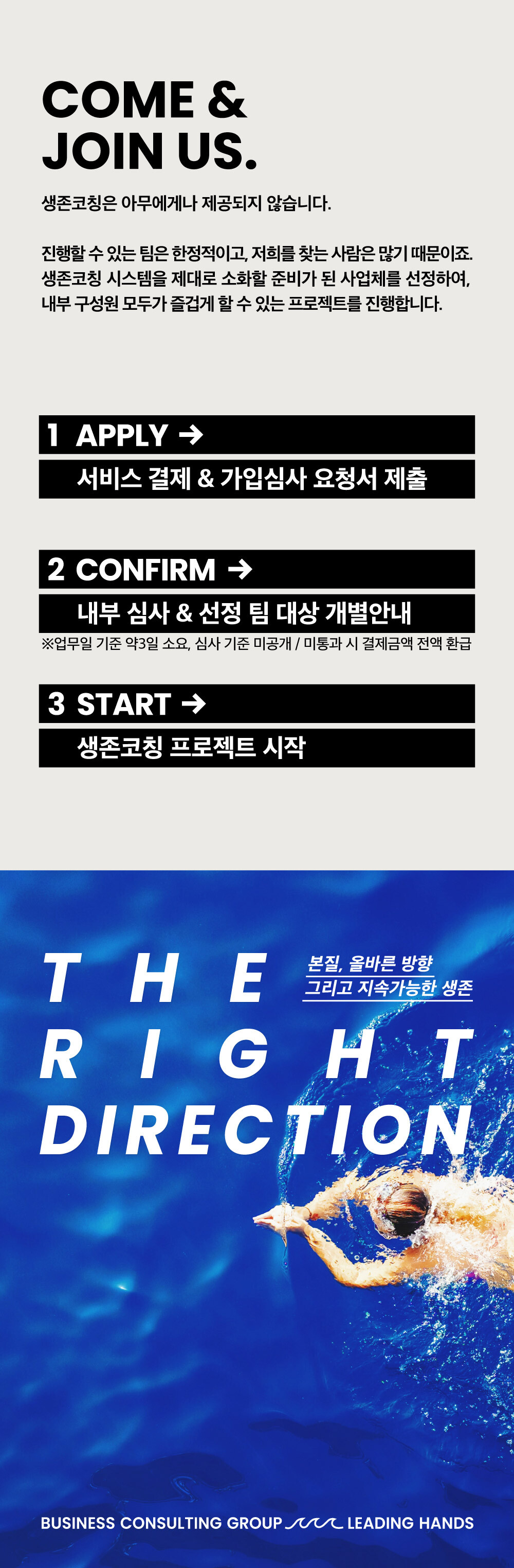 그렇기에 저희는 국내에서 최초로 생존 코칭이라는