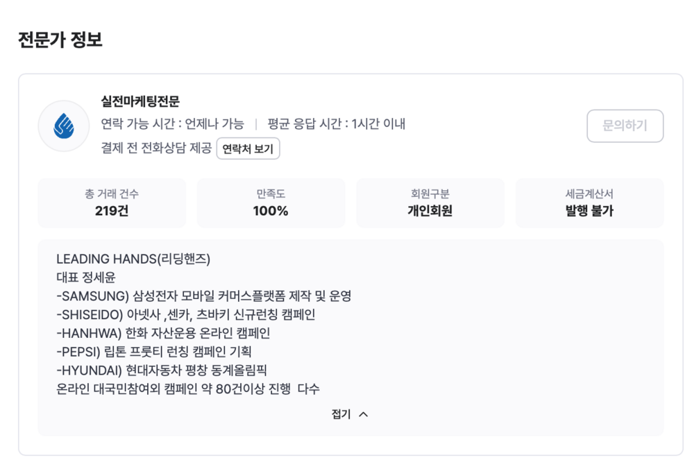 (대표 성과는 상세페이지에서 확인이 가능하시고,